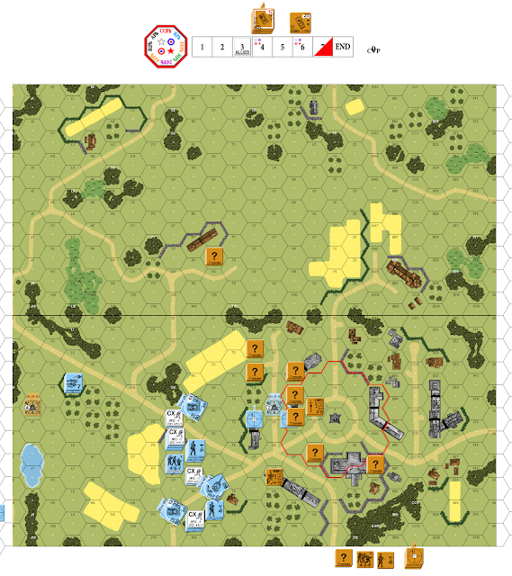 在判斷地圖上方的隱蔽單位是假的之後,德軍在推進上,更加大膽。此外,也因為俄軍缺乏有效的反坦武器(是有ATR),更讓德軍坦克肆無忌憚,往小鎮中心挺近。德軍步兵配合坦克,也順利佔據小鎮左方與下方的屋子,準備下一回的攻堅。